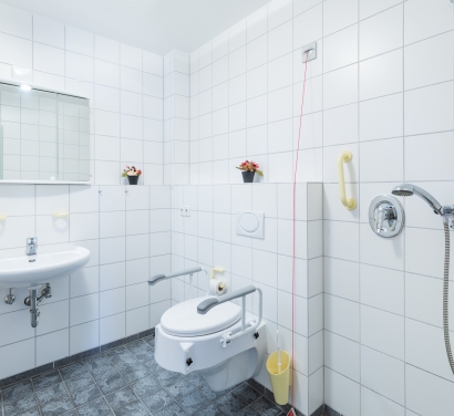 Der Pflegebereich erstreckt sich über das Erdgeschoss sowie das 1. und 2. Obergeschoss. Die Obergeschosse sind bequem über einen Aufzug zu erreichen.