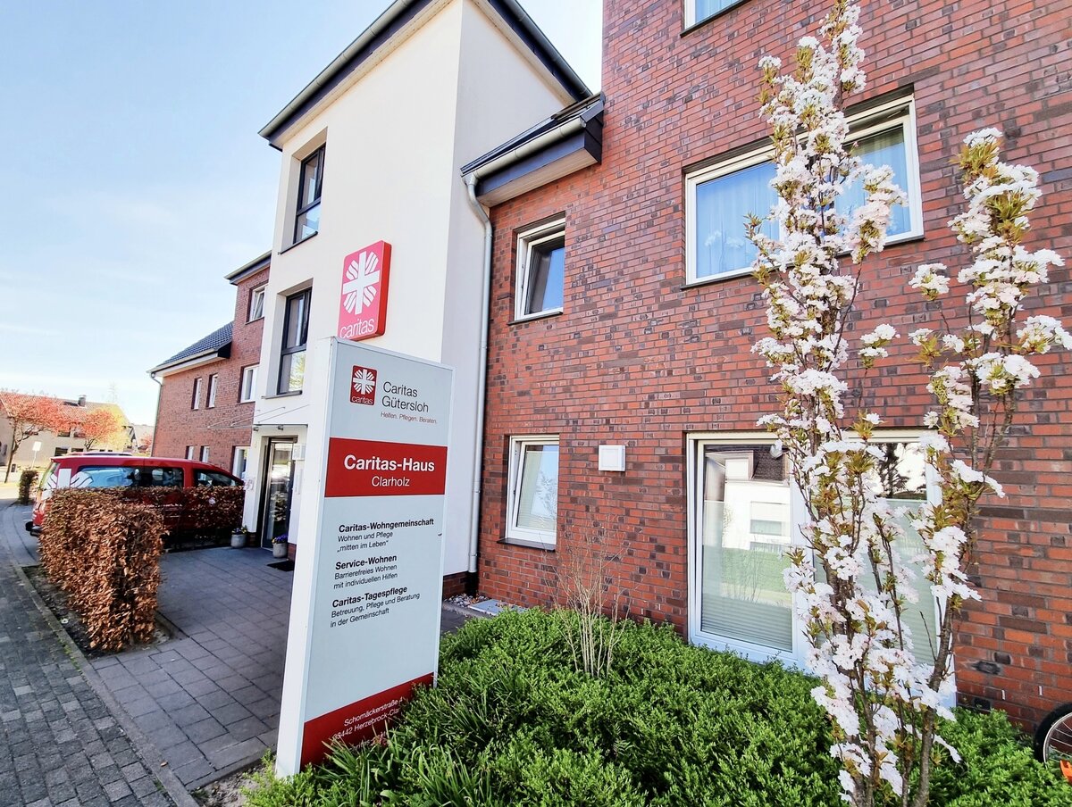Den Seniorinnen und Senioren stehen in der Caritas-Tagespflege Clarholz 16 Plätze zur Verfügung. Die Architektur ist einladend freundlich. Der zentrale Standort an der Schomäckerstraße 4 zeigt: Wir sind mitten im Leben. Die Tagespflege befindet sich im Erdgeschoss und ist somit komplett barrierefrei. Die Ausstattung und die saisonale Dekoration, die gemeinsam mit den Gästen geplant und umgesetzt wird, sorgen für eine wohnliche Atmosphäre. Die Anzahl der Räume erlaubt den Gästen Gemeinschaft zu erleben, aber auch immer einen Rückzugsort für sich zu finden. Die Tagespflege hat eine schöne Außenanlage, die zum Verweilen einlädt.