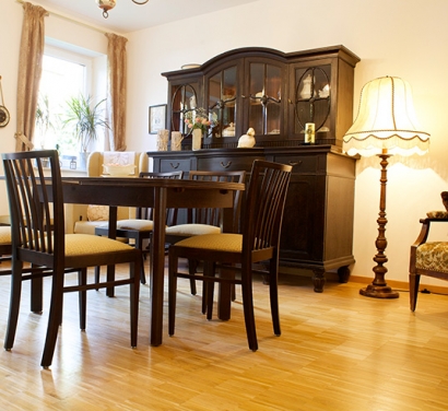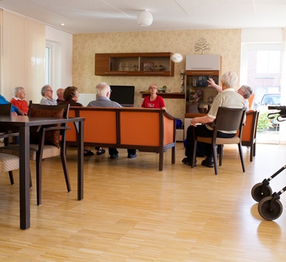 Der helle, freundliche Gemeinschaftsbereich mit der offenen Küche ist der Mittelpunkt der Tagespflege. Hier ist man einfach gerne zusammen und genießt den Tag.