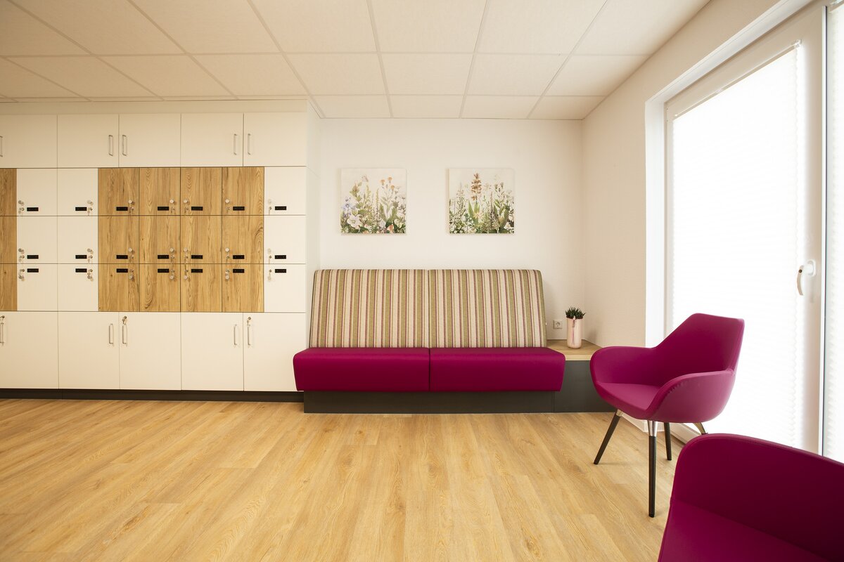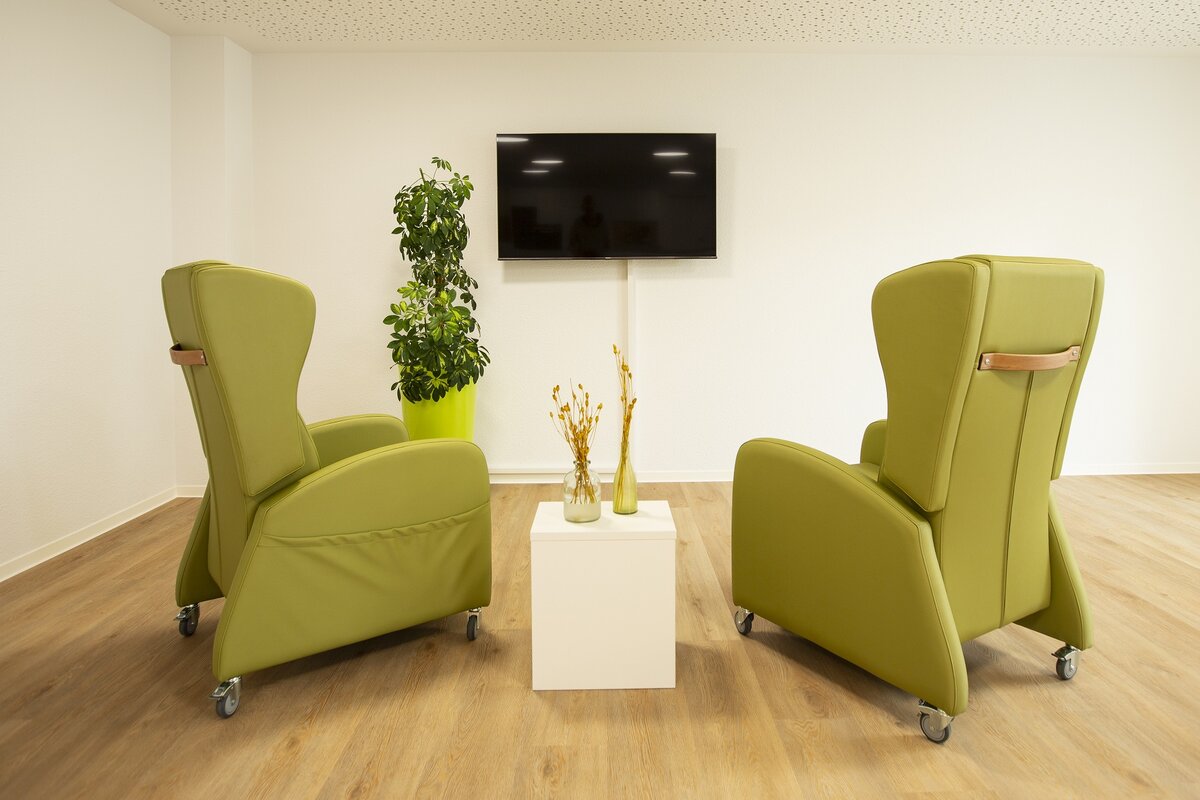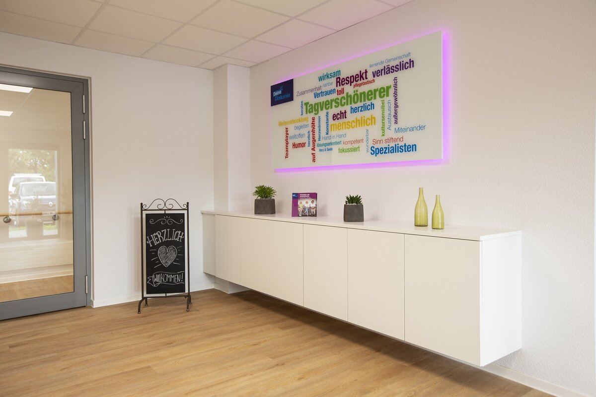 Die Tagespflege „Am Ahornpark“ befindet sich inmitten eines gewachsenen Wohngebiets. Der großzügige Gemeinschaftsraum öffnet sich hin zu einem geschützten Garten mit Terrasse. In nur 500 m Entfernung laden die Parkanlagen des Schloss Rheda zum Flanieren ein, die Innenstadt mit ihren Einkaufsmöglichkeiten ist in 15 Minuten zu Fuß zu erreichen.