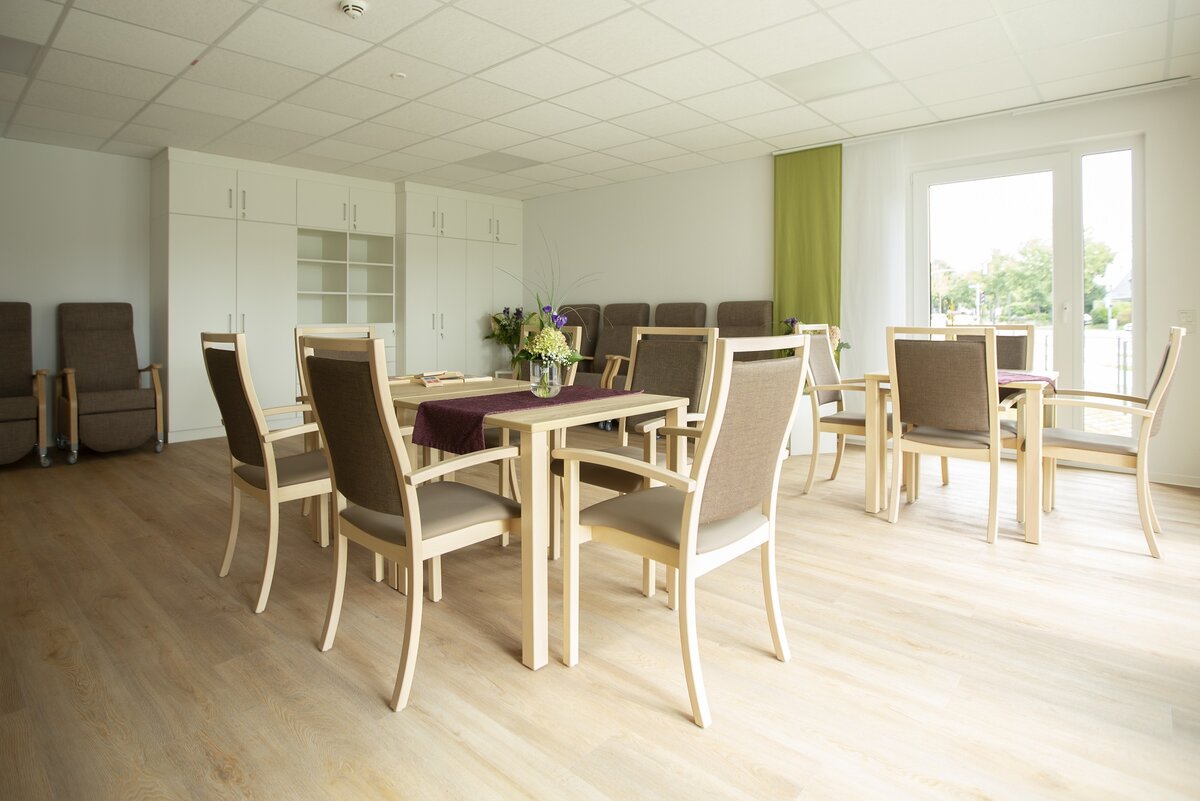Die Tagespflege besitzt helle und freundliche Gemeinschaftsräume, Fernseh- und Ruheräume sowie eine offenen Küche mit Speisesaal. Weiterhin gibt es ein Bad mit Wanne und Dusche. Das gesamte Gebäude ist barrierefrei.