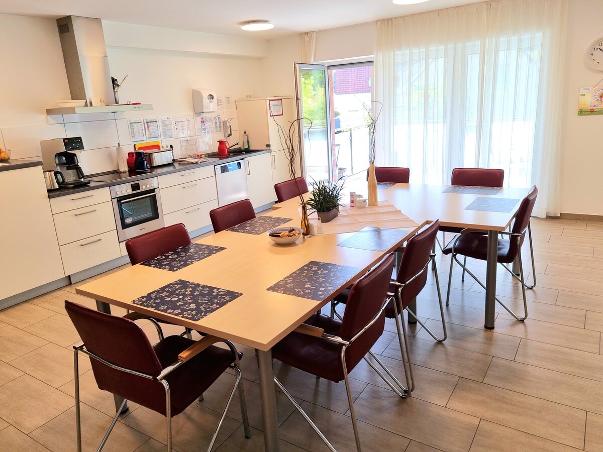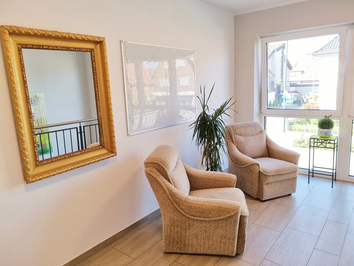 Jeder Mieter lebt hier in seinem eigenen, barrierefreien Zimmer mit Bad und WC, sowie Fernseh- und Telefonanschluss, das natürlich individuell eingerichtet werden kann. Der großzügig geschnittenen, hellen Gemeinschaftsräume sowie die offene Küche werden, entsprechend einer Großfamilie, gemeinschaftlich genutzt.