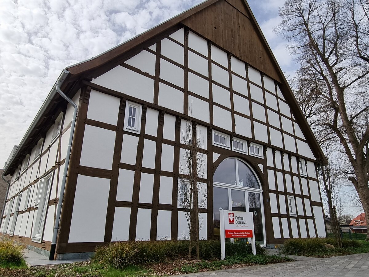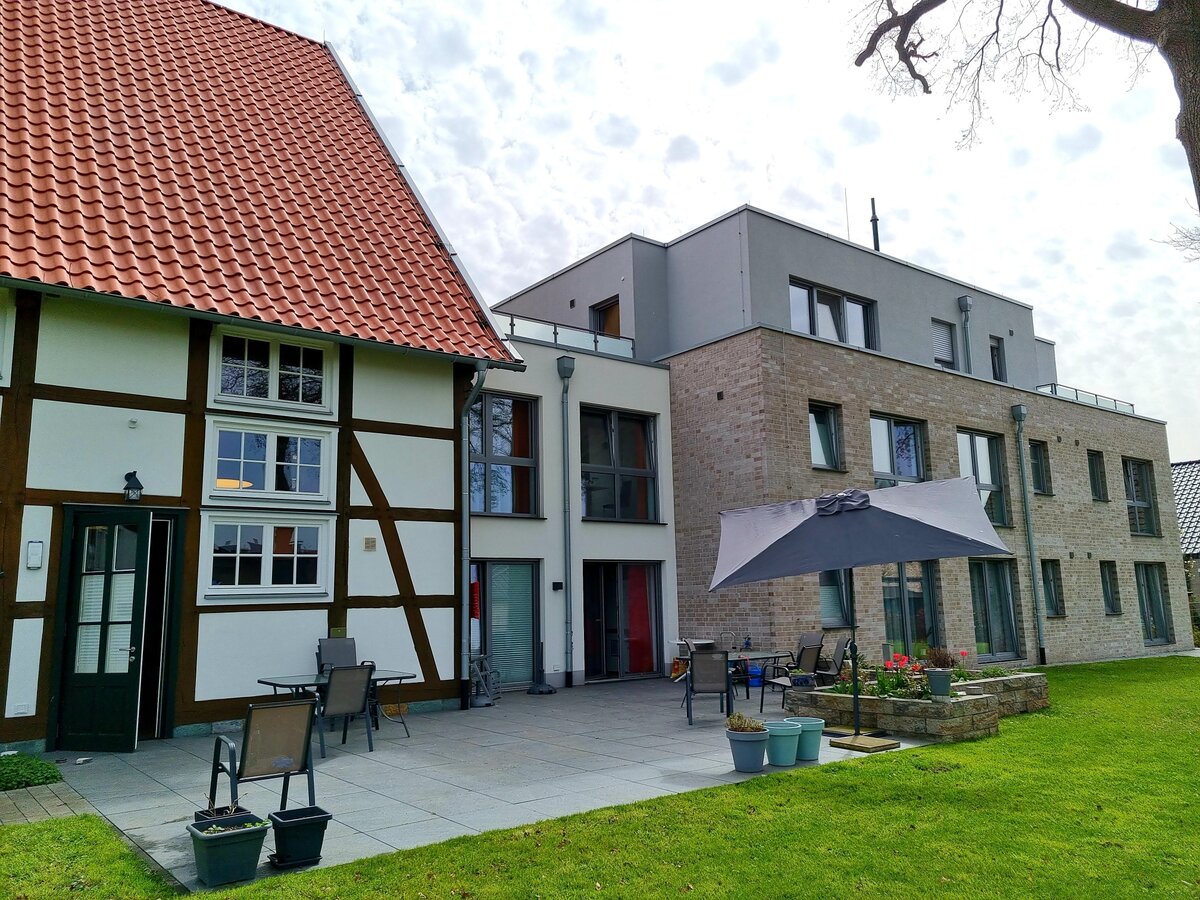 Auf dem historischen „Hof Niggemeier“ am Niggenkamp finden 18 Seniorinnen und Senioren ein neues Zuhause in Rietberg-Mastholte. Das Fachwerkhaus, errichtet im 19. Jahrhundert, wurde mit viel Herzblut restauriert. Auf zwei Etagen befinden sich die Wohngemeinschaften mit Wohnraum für jeweils elf Mieter im Erdgeschoss und sieben Mieter im 1. Obergeschoss. Der große Garten mit altem Baumbestand grenzt an einem Spielplatz des Neubaugebietes, sodass tägliche Begegnungen zwischen alt und jung zum Alltag gehören können.