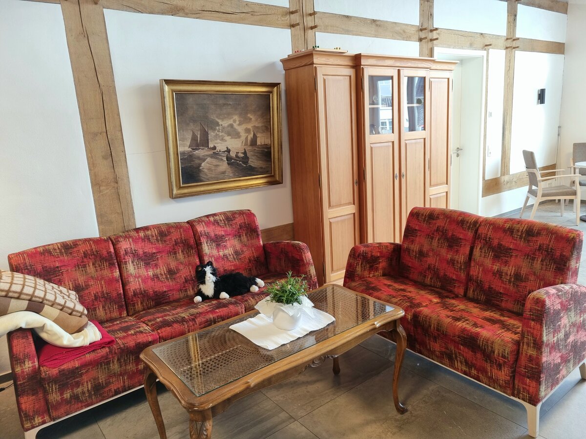 Unsere Mieter, die zum größten Teil aus der näheren Umgebung stammen haben hier die Möglichkeit Traditionen zu leben und mit vertrauten Menschen ihren Lebensabend zu verbringen. Jeder Mieter lebt hier in seinem eigenen, barrierefreien Zimmer mit Bad und WC, sowie Fernseh- und Telefonanschluss, das von jedem Mieter individuell eingerichtet werden kann. Der großzügig geschnittene helle Gemeinschaftsraum sowie die offene Küche befinden sich in der ehemaligen Deele und werden entsprechend einer Großfamilie gemeinschaftlich genutzt.