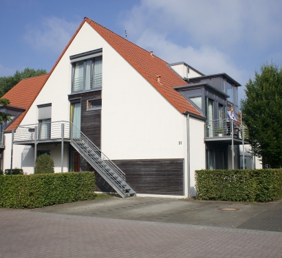 Zentral und ruhig liegt die Ambulante Hausgemeinschaft Ahornweg 31 am Rande der Innenstadt von Halle. Die Bewohner erreichen die Innenstadt über einen Fußweg, der durch ein Wohngebiet führt.