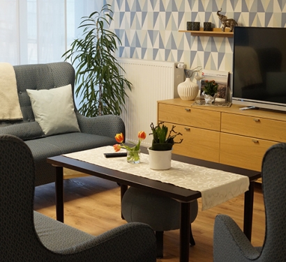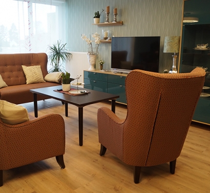 Sämtliche Einzelzimmer münden in den Gemeinschaftsbereich. So ist kein Bewohner allein, wenn er sein Zimmer verlässt.