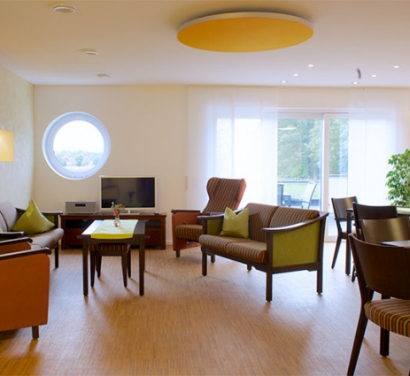 Sämtliche Einzelzimmer münden in den Gemeinschaftsbereich. So ist kein Bewohner allein, wenn er sein Zimmer verlässt.