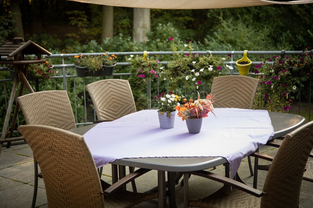 Das gemütliche "Haus am Fichtenbusch" in Rheda befindet sich auf einem großzügigen Grundstück mit Garten. Es grenzt direkt an einen idyllischen Wald und den nahen Stadtpark. Hier können die Bewohnerinnen und Bewohner Ruhe tanken und den Blick in die Laubbäume genießen. Durch die zentrale Lage und eine optimale Verkehrsanbindung, die Bushaltestelle ist nur 50 Meter entfernt, lassen sich bequem Einkaufstouren in Rheda organisieren. Besonders beliebt sind Einkaufsfahrten oder Ausflüge mit unseren zwei rollstuhlgerechten Fahrzeugen. Unser Fahrer bringt die Bewohnerinnen und Bewohner je nach Wunsch gern zum Fußballspiel, ins Theater oder einfach nur in die nähere Umgebung, um Erledigungen vorzunehmen. Sehr komfortabel ist der Bahnhof Rheda zu erreichen, die Distanz beträgt nur 800 Meter.