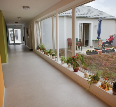 Garten mit besonderen Anregungen und Rückzugsmöglichkeiten für demenziell erkrankte Menschen