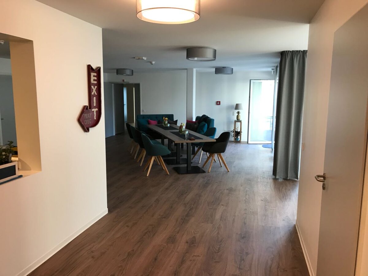 Die Wohngruppe befindet sich im Erdgeschoss des Hauses und bietet jedem Bewohner sein eigenes Zimmer. Gestalten kann jeder Bewohner seine Wohnfläche nach seiner Individualität und persönlichem Geschmack. Die Gemeinschaftsflächen dienen als zentraler Treffpunkt der Wohngruppe.