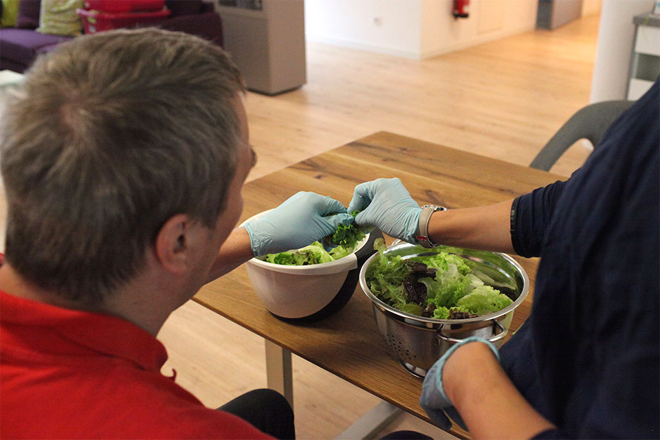 Die Wohngruppen sind das Zuhause der Menschen, die dort leben. Jeder Bewohner hat seinen eigenen Wohn/ Schlafraum mit Bad, den er sich so einrichtet wie er möchte – von der Farbgestaltung der Wände bis zu den Möbeln. Das gemeinsame Leben findet in der offenen Wohnküche statt. Die Bewohner beteiligen sich nach ihren Möglichkeiten und Wünschen am Gemeinschaftsleben. So wird gemeinsam gekocht, gegessen, geklönt und vor allem gelebt.